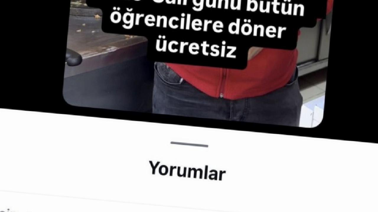Dönerci, Saran’ın videoya yorum yapması halinde önümüzdeki hafta salı günü tüm öğrencilere ücretsiz döner dağıtacağını açıkladı.