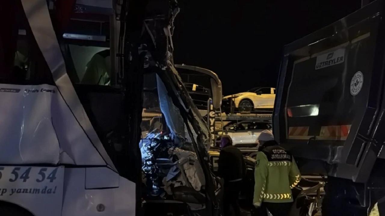 Yolcu otobüsü, hafriyat kamyonu ve 2 otomobilin karıştığı kazada 1 kişi yaşamını yitirdi.