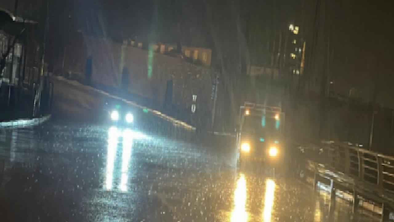 Denizin taşarak yola ulaştığı anlar çevrede bulunan güvenlik kameralarına yansıdı. Görüntülerde dalgaların kıyıya sert şekilde vurduğu ve deniz suyunun yola taştığı görüldü.