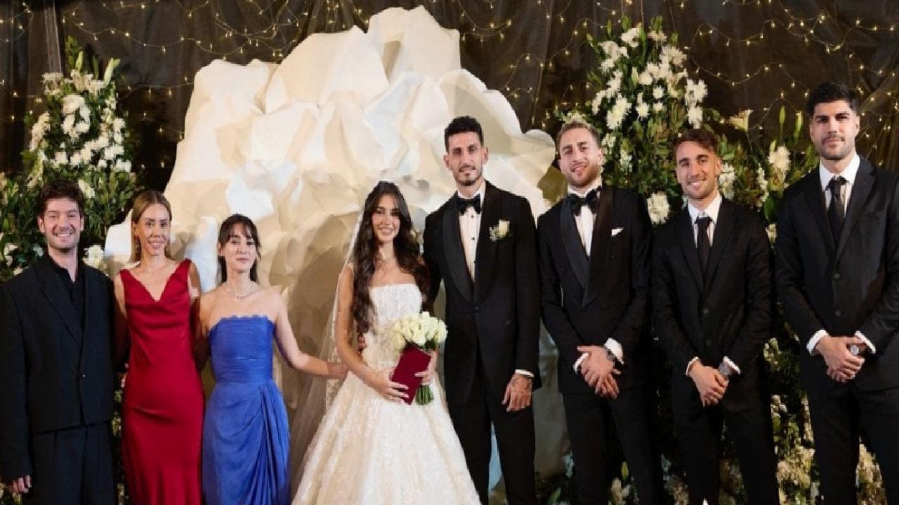 Geçmiş dönemlerde Fenerbahçe forması giyen Samet Akaydin'ın nikah töreni esnasında şahitliklerini yapan arkadaşları dikkat çekti.