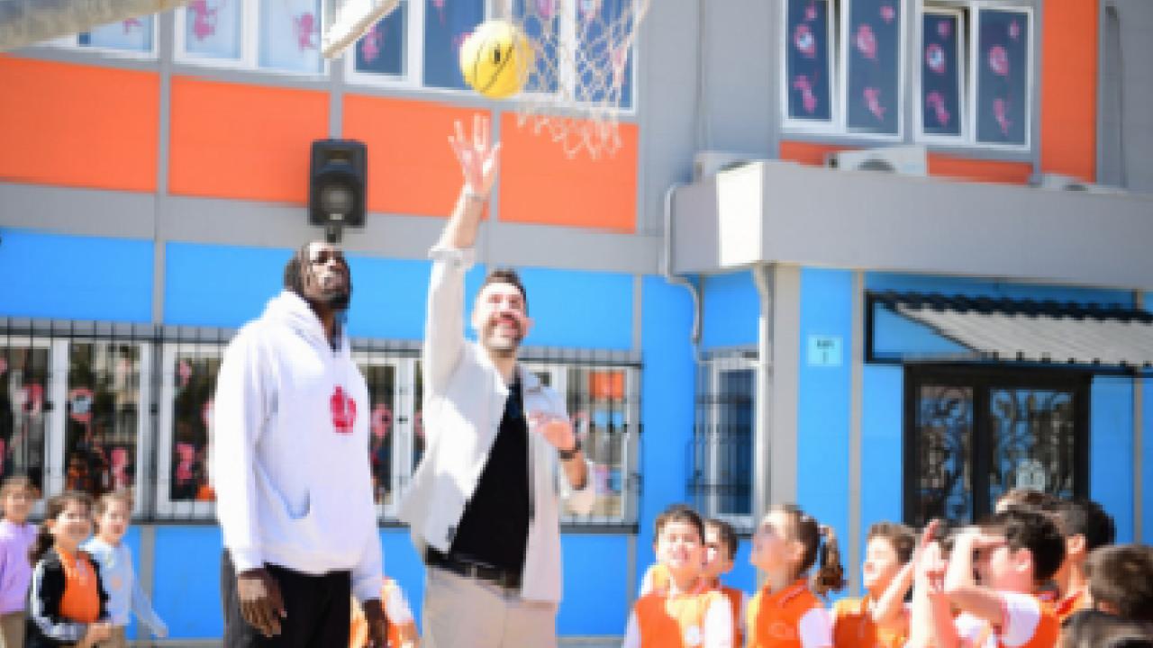 ÖĞRENCİLERLE BASKETBOL OYNADILAR