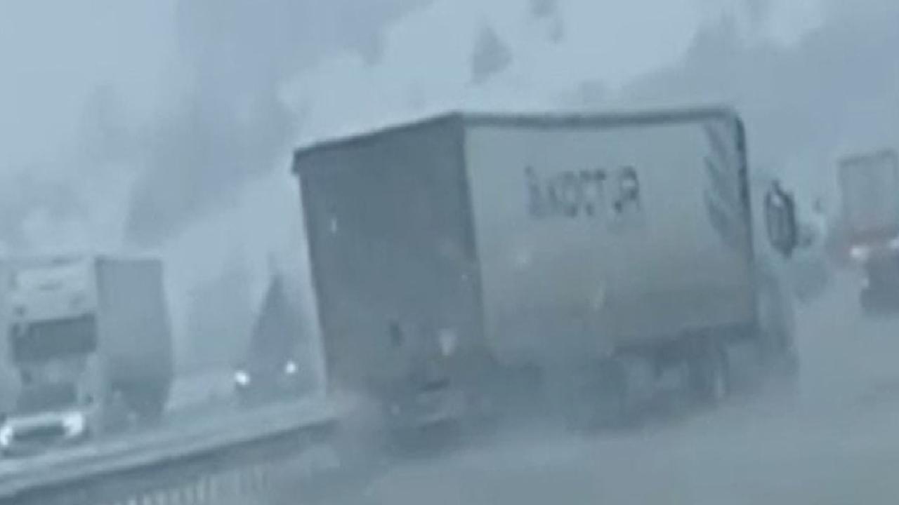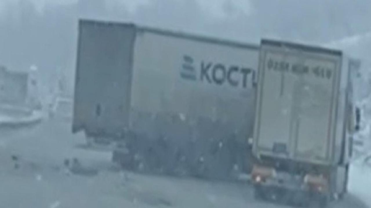 Turcan'ın kullandığı tırın bariyerlere ve diğer tıra çarparak yoldan çıktığı anlar cep telefonuyla görüntülendi.