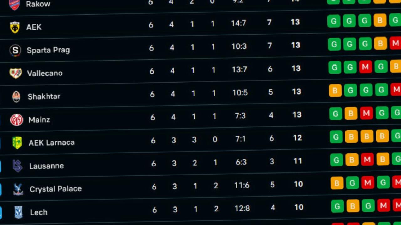 4. galibiyetini alan Mainz 05 ise 13 puana yükseldi ve lig aşamasını 6. sırada tamamladı.