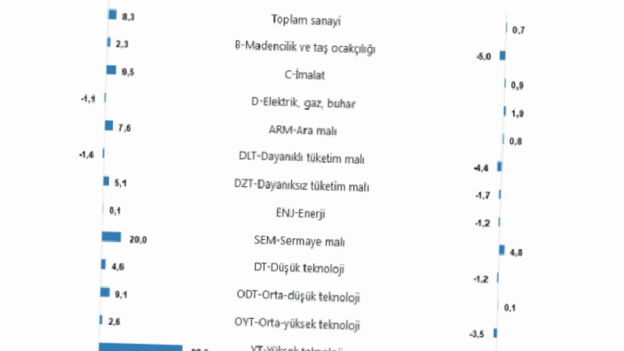 İmalat Sanayi: Yıllık yüzde 9,5, aylık yüzde 0,9 artışla güçlü bir performans sergiledi.