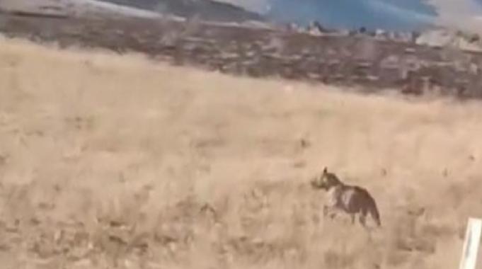 Tepeden hızla inen sırtlan, yolu geçerek arazide gözden kayboldu.