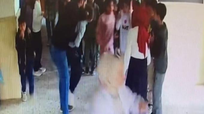 Koridora çıkarılan öğrenciye öğretmeni müdahale etti.
