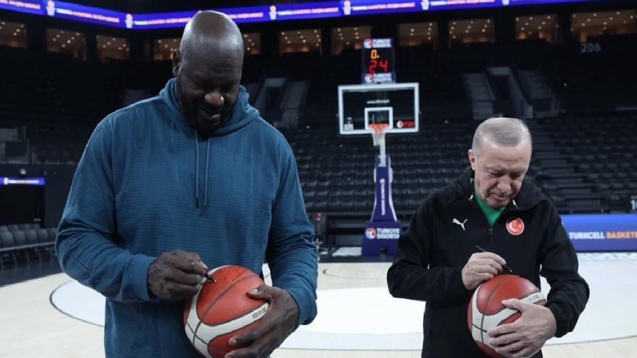 Samimi bir ortamda gerçekleşen görüşmede Cumhurbaşkanı Erdoğan ve Shaquille O’Neal, birbirlerine imzaladıkları basketbol toplarını da hediye etmişti.