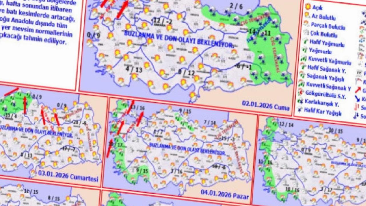 İç Anadolu ve Doğu Anadolu bölgelerinde ise dondurucu soğukların kırılacağı, ancak yüksek kar örtüsünün bulunduğu yerlerde gece ayazının etkisini sürdürmeye devam edeceği bildirildi.