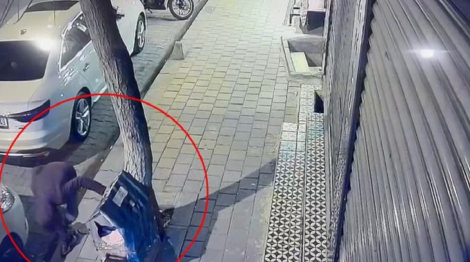 Olayda, kimliği henüz belirlenemeyen kişi,kaldırımdaki kedi evini tekmeledi.