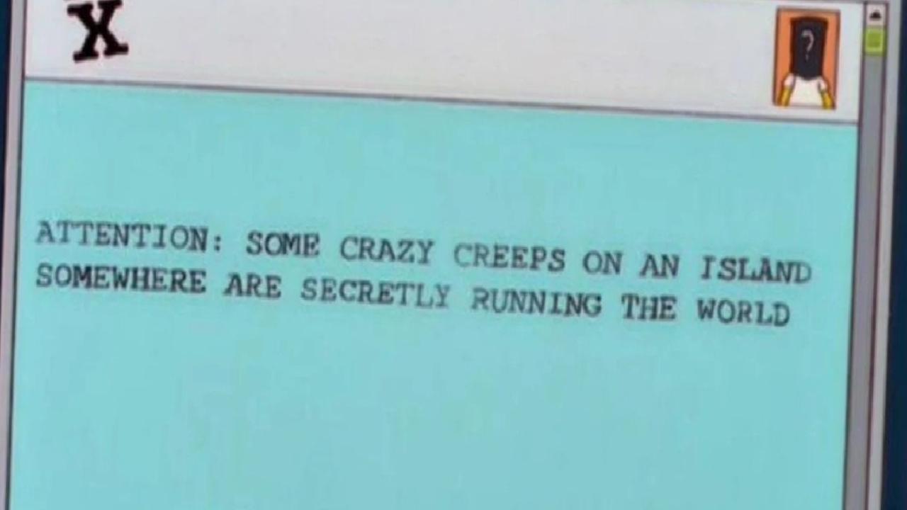"Dikkat: Bir yerlerde, bir adadaki bazı çılgın tipler gizlice dünyayı yönetiyor."