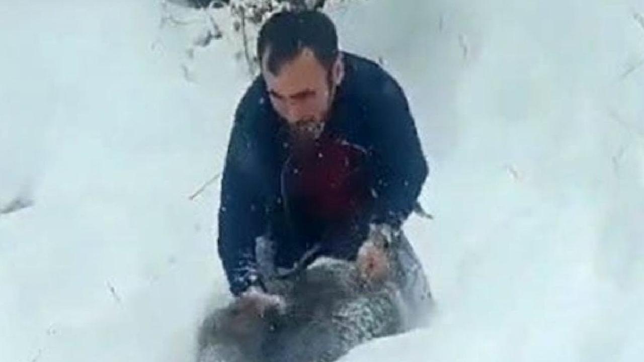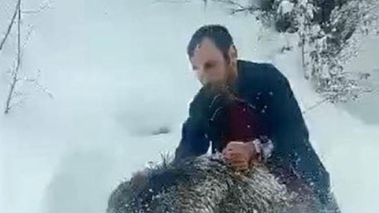 Yakalama anında kar kalınlığının 1 metreyi aştığını belirten Yılmaz, "Kucağıma aldığımda karın içine battık. Domuzu önüme koyarak kardan çıkabildim.Benim için kötü bir an değildi, aksine güzel bir anıydı.