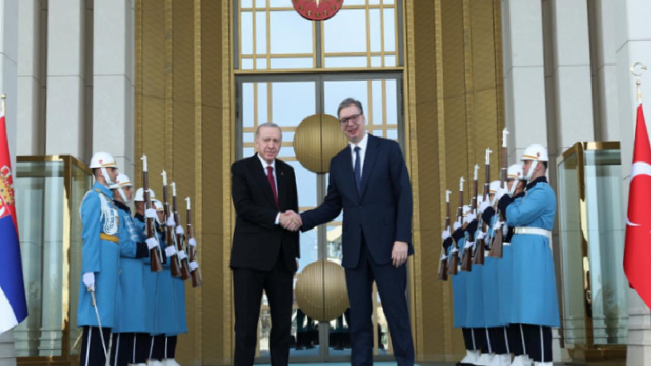 ANKARA () - Cumhurbaşkanı Erdoğan, Türkiye’ye resmi ziyarette bulunan Sırbistan Cumhurbaşkanı Aleksandar Vucic'i Cumhurbaşkanlığı Külliyesinde ağırladı. Karşılama töreni ardından iki lider baş başa görüşme gerçekleştirdi.