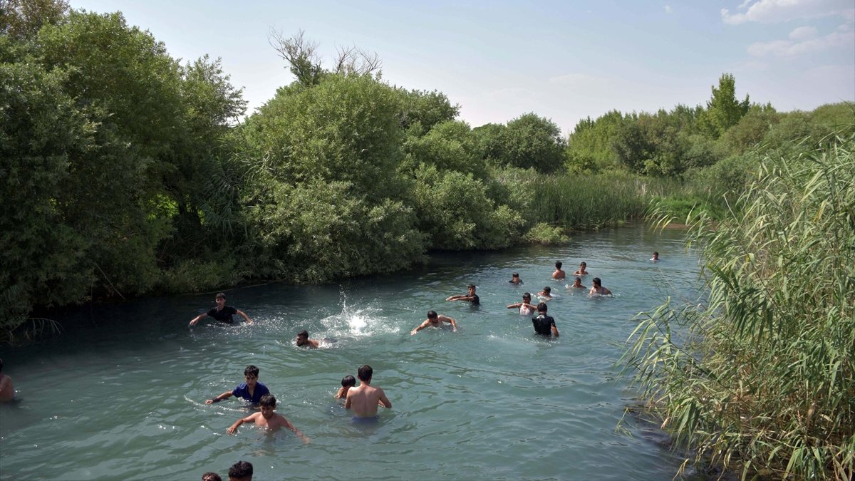 Sıcak havadan bunalan halk, serinlemek için çareyi nehirlere girmekte buluyor.