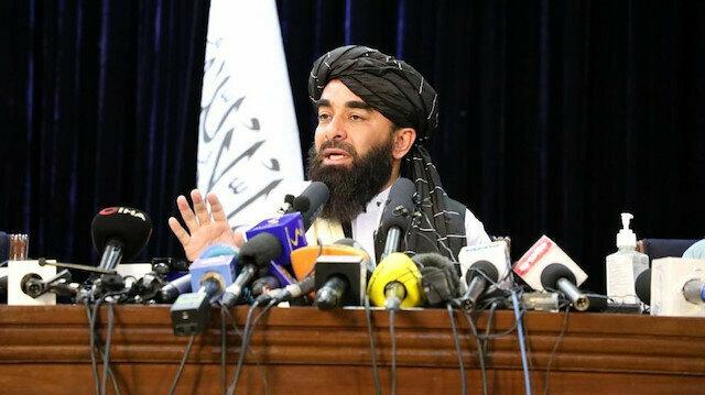 Afganistan idaresini ele geçiren Taliban Sözcüsü Zabibullah Mücahit, Kabil'de basın toplantısı düzenliyor.