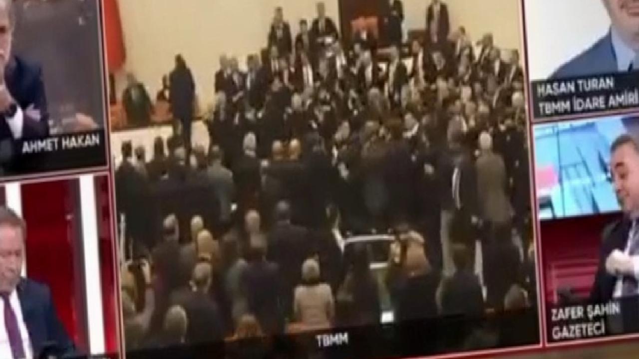 CHP milletvekillerinin kürsüye yönelmesiyle başlayan tartışma kısa sürede büyüyerek yumruklu kavgaya dönüştü.