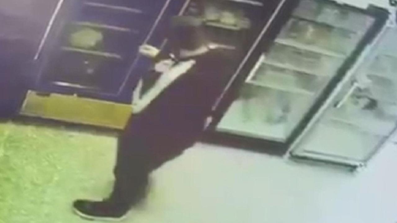 Şüphelinin içkileri alıp, iş yerinden çıktığı anlar güvenlik kamerasına yansıdı.