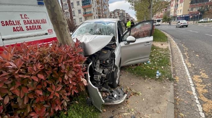 Tekirdağ'ın Çorlu ilçesinde G.B. idaresindeki Bulgaristan plakalı araç, sürücüsünün direksiyon hakimiyetini kaybetmesi sonucu orta refüje çıkarak ağaca çarptı.