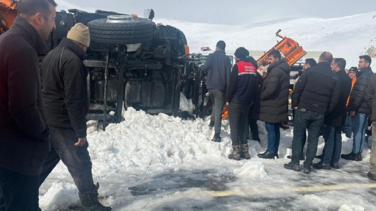 Çaldıran–Doğubayazıt kara yolunda yer alan Tendürek Geçidi’nin Soğuksu Mahallesi mevkiinde, bölgede etkisini sürdüren yoğun kar yağışının ardından yol temizleme çalışması yapan Karayolları 11’inci Bölge Müdürlüğü’ne bağlı 115’inci Erciş Şube Şefliği’ne ait kar küreme aracı, kontrolden çıkarak refüje çarptı ve devrildi.
