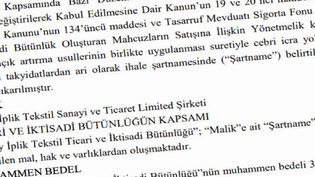 TMSF'nin Özçay İplik Tekstil Ticari ve İktisadi Bütünlüğünün satışına ilişkin ilanı, Resmi Gazete'nin bugünkü sayısında yayımlandı.