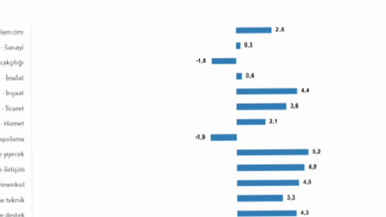 Aylık bazda ise sanayi sektörü ciro endeksi yüzde 0,3, inşaat sektörü yüzde 4,4, ticaret sektörü yüzde 3,6 ve hizmet sektörü yüzde 2,1 oranında artış gösterdi.