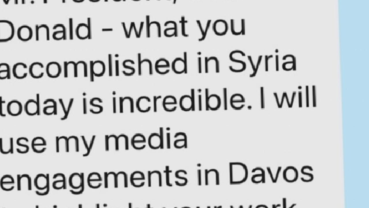 "Sayın başkan, sevgili Donald, Suriye'de başardıklarınız inanılmaz. Davos'taki medya temaslarımı, oradaki gayretlerinizi, Gazze ve Ukrayna'daki faaliyetlerinizi öne çıkarmak için kullanacağım. Grönland konusunda ileriye dönük bir çözüm yolu bulma konusunda kararlıyım. Sizi görmek için sabırsızlanıyorum."