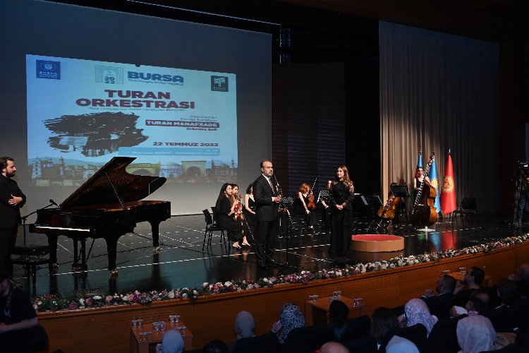 BURSA (İGFA) – Altyapıdan sanata kadar birçok alanda çalışmalarını sürdüren Bursa Büyükşehir Belediyesi, Bursa’nın 2022 Türk Dünyası Kültür Başşehri seçilmesi münasebetiyle birbirinden farklı programlar düzenlemeye devam ediyor. Bu kapsamda Türk Dünyası’nın bayan sanatkarlarından oluşan ‘Turan Orkestrası’, Atatürk Kongre Kültür Merkezi’nde Bursalılar için sahne aldı. Bursa Büyükşehir Belediyesi tarafından Bursa Kültür AŞ uyumunda düzenlenen konserin orkestra şefi Azerbaycan Devlet Sanatkarı Turan Manafzade oldu. Sanatseverlere unutulmaz bir müzik şöleni yaşatan Turan Orkestrası, dünyaca ünlü yapıtları ve Türk dünyasına ilişkin birçok farklı ezgiyi Bursalılar için seslendirdi. Turan Manafzade ise piyano performansı ve söylediği müziklerle dinleyenleri mest etti. Manafzade, ‘Sarı Gelin’, ‘Nazende Sevgilim’, ‘Laçin’ ve daha birçok parçayı sanatseverlerle birlikte söyledi.