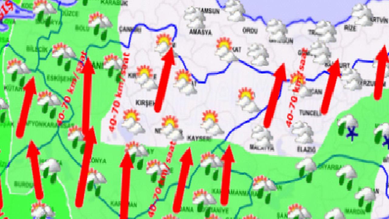 Rüzgârın; Güney ve İç Ege, Akdeniz, İç Anadolu ile Karadeniz’in iç kesimlerinde güneyli, Marmara’da kuzeyli yönlerden 40-70 km/saat hızla fırtına şeklinde esmesi bekleniyor. Fırtına nedeniyle çatı uçması, ağaç devrilmesi ve ulaşımda aksamalar yaşanabileceği bildirildi.