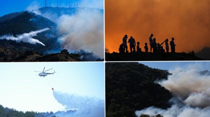 Yangının kontrol altına alındığı bölgelerde zarar tespit çalışmaları hızla sürdüğü aktarılan açıklamada, olası can kayıplarının önüne geçmek için yangınlara yakın yerleşim yerlerinde yaşayan vatandaşların güvenli alanlara tahliye edildiği ifade edildi.
