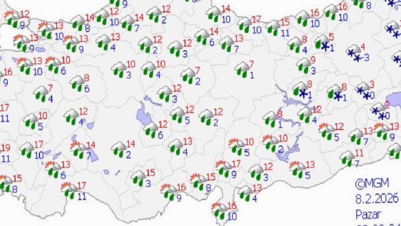 Sıcaklıkların batıda 10-20 derece civarlarında, doğuda ise sıfır ve altında değerlerin görüleceği tahmin ediliyor.