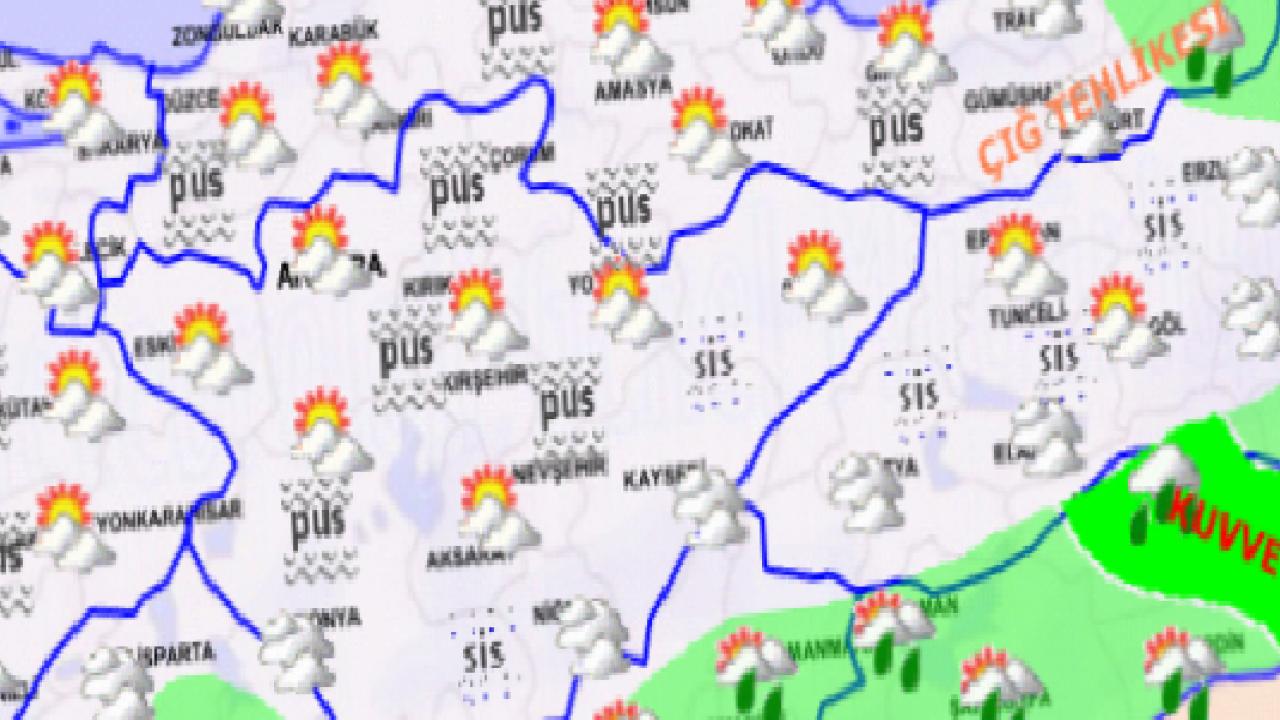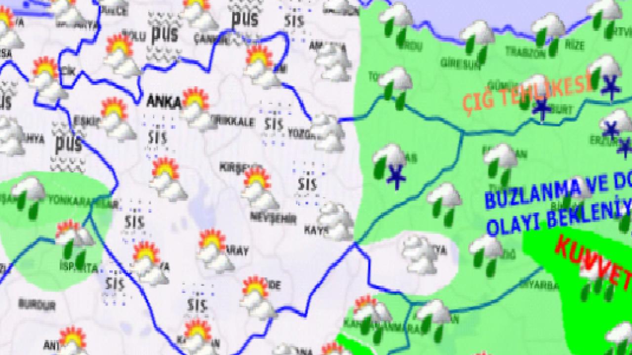 Sabah ve gece saatlerinde doğu bölgelerde buzlanma ve don olayları beklenirken, iç kesimlerde pus ve yer yer sis görülmesinin beklendiği hava tahminlerine göre, ayrıca Doğu Karadeniz’in iç kesimlerinin yüksekleri ile Doğu Anadolu’nun doğusundaki eğimli ve yüksek kar örtüsüne sahip alanlarda çığ ve kar erimesi tehlikesi bulunduğu uyarısı yapıldı.