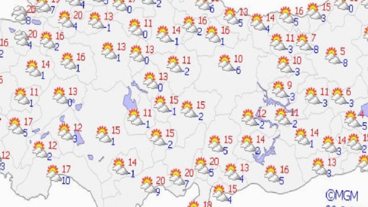 İç ve doğu kesimlerde sıfırın altında veya sıfıra yakın değerlerin hakim olacağı öngörülüyor.