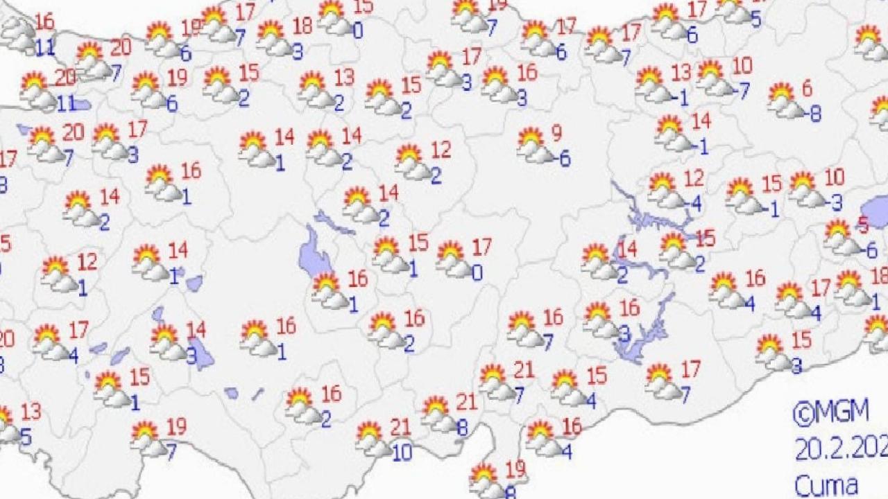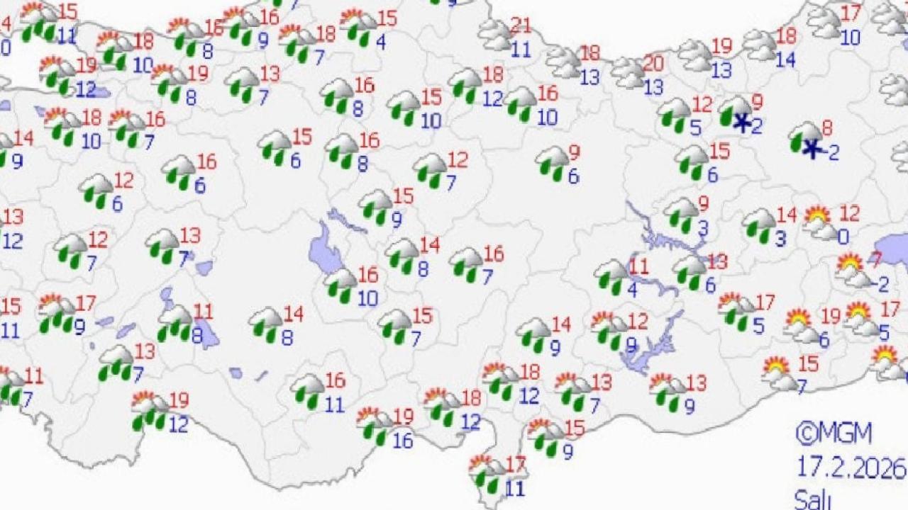 Meteoroloji Genel Müdürlüğü'nün (MGM) son verilerine göre ülke genelinde parçalı ve çok bulutlu bir hava hakim olacak.