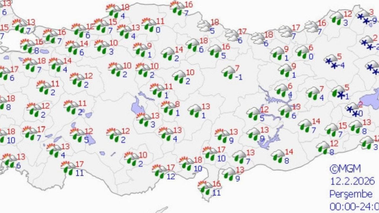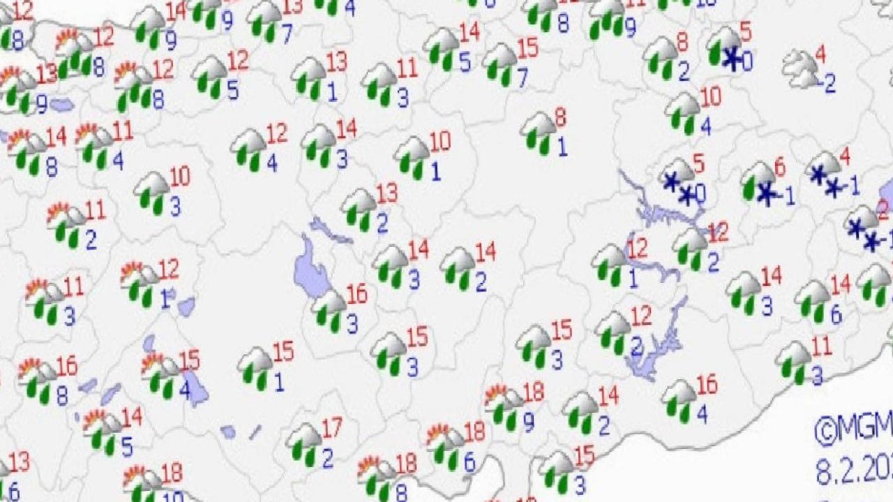 Sıcaklıklar kıyı kesimlerde 10-18, iç ve doğu bölgelerde 5-13 derece civarında seyrederken, yüksek rakımlarda daha düşük değerler kaydedilecek.