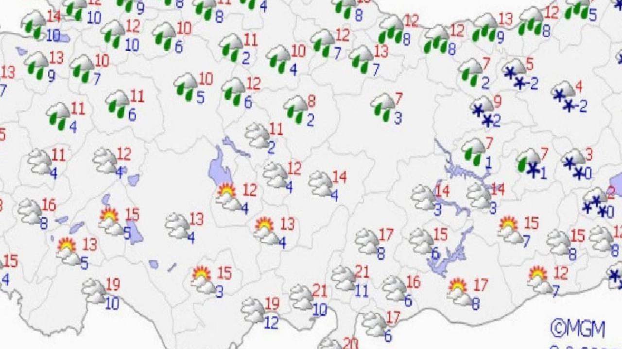 Sıcaklıkların benzer seviyelerde; doğuda daha soğuk ve 0-11, batıda ılıman ve 8-18 derece civarında seyredeceği öngörülüyor.