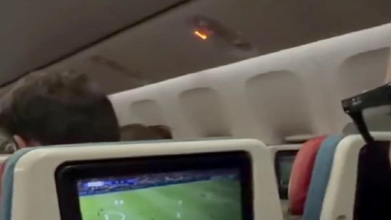Özkan Öztürk'ün profesyonel anlatımıyla birlikte uçak kabininde adeta stadyum havası oluştu.