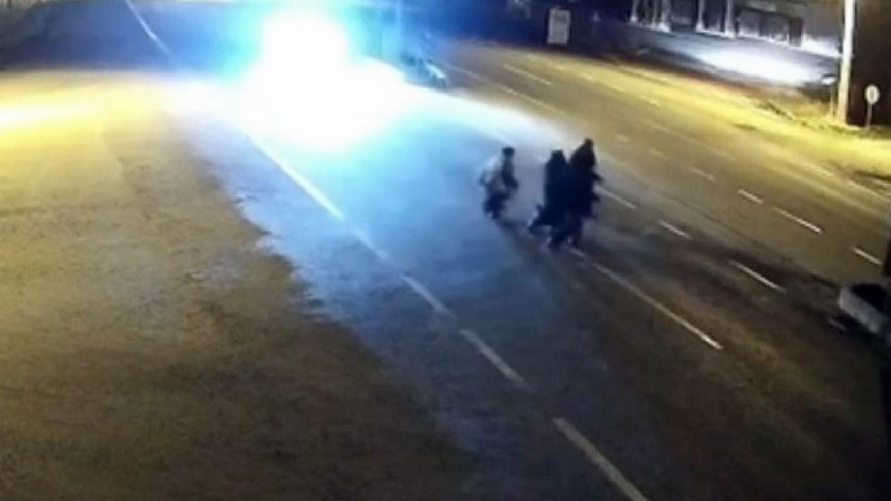 Görüntülerde yolun karşısına geçmeye çalışan 4 kişiden 3'üne otomobilin çarpması yer aldı.