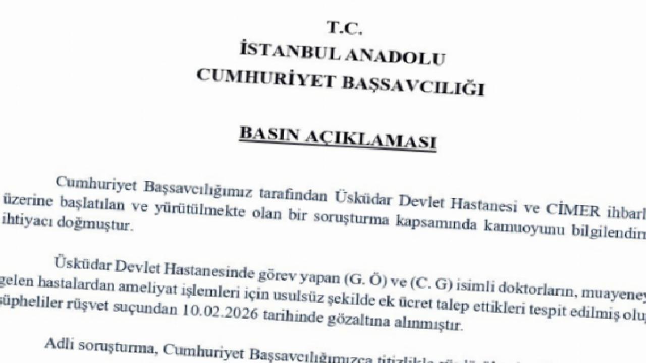 İSTANBUL () - İstanbul Anadolu Cumhuriyet Başsavcılığı, Üsküdar Devlet Hastanesi ve CİMER ihbarları üzerine başlatılan soruşturma kapsamında kamuoyunu bilgilendirdi.