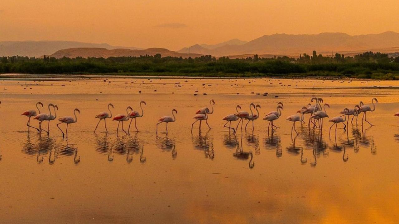 Flamingoların beslenme, dinlenme ve gün batımında Van Gölü üzerindeki toplu uçuşları güzel görüntüler oluşturuyor.