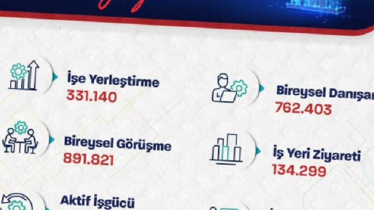 Bu yılın ilk 3 ayında 331 binden fazla işe yerleştirmeye aracılık ettik. 134 binden fazla iş yeri ziyareti ve 892 bine yakın bireysel görüşme gerçekleştirdik. 508 bin 910 açık iş (işveren tarafından talep edilen-ihtiyaç duyulan eleman) tespit ettik.