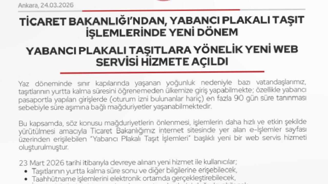 ANKARA () - Ticaret Bakanlığı, yabancı plakalı araç sahiplerini ilgilendiren önemli bir uygulamayı hayata geçirdi.