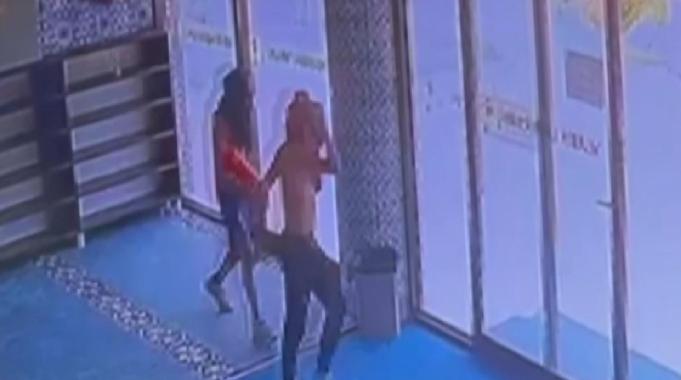 Burada yangın tüpünü duvardan sökerek çalan hırsızlar bölgeden uzaklaştı.