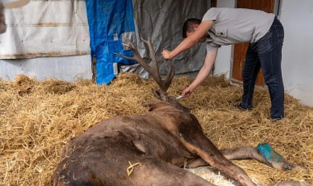 Veteriner hekimlerin yaptığı taramada geyiğin ateşli silahla sol ön ayağından vurulduğu ve ayağında kırık olduğu belirlendi. Yaklaşık bir buçuk yıldır bu şekilde doğada yaşadığı tahmin edilen erkek kızıl geyik önümüzdeki hafta operasyona alınacak.
