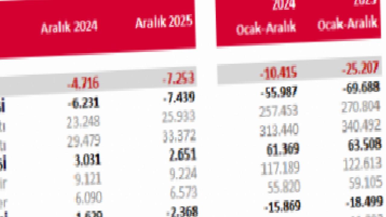 ANKARA () - Türkiye Cumhuriyet Merkez Bankası (TCMB), Aralık 2025 dönemine ilişkin Ödemeler Dengesi İstatistikleri’ni yayımladı.