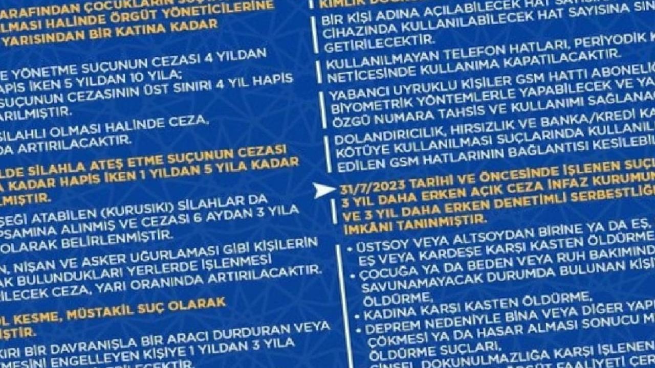 TBMM Genel Kurulunda kabul edilen ve kamuoyunda 11'inci Yargı Paketi olarak bilinen ‘Türk Ceza Kanunu ile Bazı Kanunlarda Değişiklik Yapılmasına Dair Kanun Teklifi’nin hayırlı olmasını diliyorum. Türkiye Yüzyılı Yargı Reformu Strateji Belgemizde yer alan hedefler doğrultusunda hazırlanan yargı paketiyle; toplumsal huzurun desteklenmesi, suçla daha etkin mücadele edilmesi, temel hak ve özgürlüklerin daha etkin korunması, hukuki güvenliğin güçlendirilmesi, adalet hizmetlerimizin etkinliğinin artırılması, infaz adaletinin sağlanması alanlarında önemli düzenlemeler hayata geçirilmiştir.