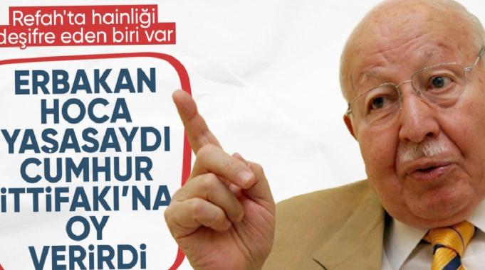 Necmettin Erbakan hocam bugün yaşasaydı şüphesiz ki benim de söylediğim gibi Cumhur İttifakı'nın devam ettirilmesini isterdi. Hatta yani Cumhur İttifakı'nın içerisinde aktif rol alıp ekonomiyi de bugünkü zorluklardan kurtarmanın bir yoluna bakardı. İstanbul'da tabii ki Cumhur İttifakı'nın adayının kazanması için bir yol izlerdi. Kesinlikle ittifak içinde yer almamayı tercih etmezdi.