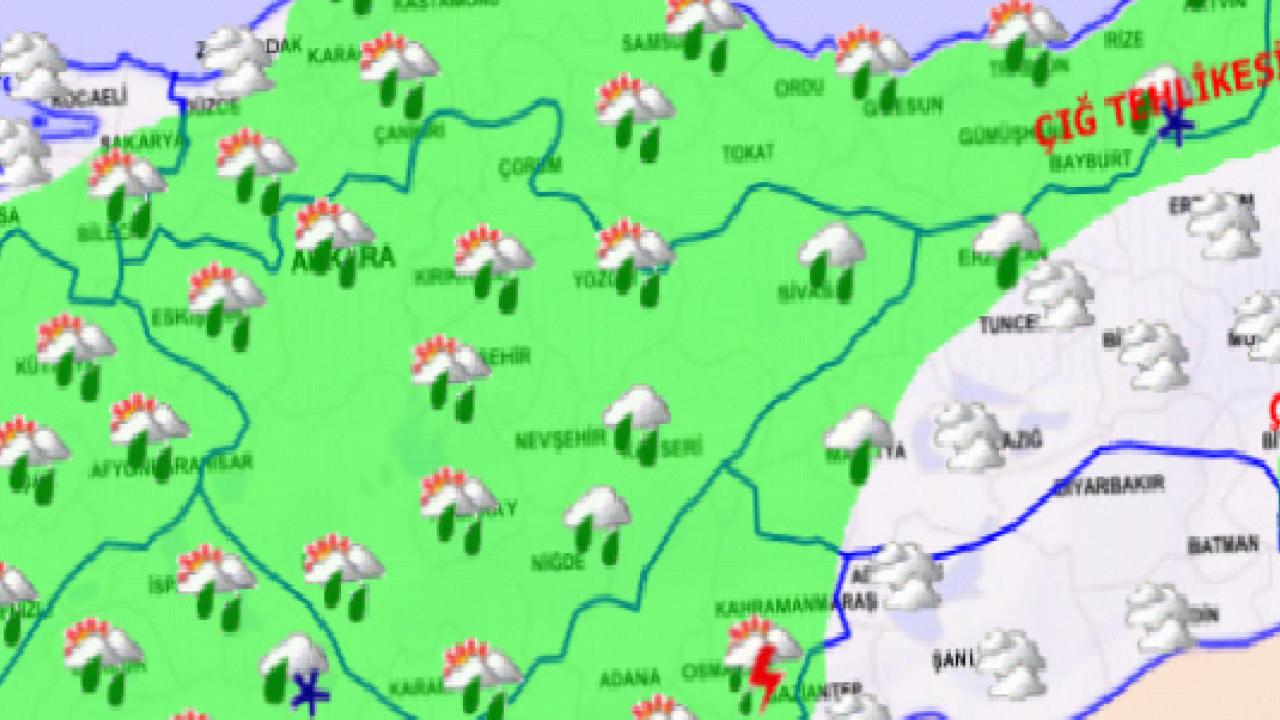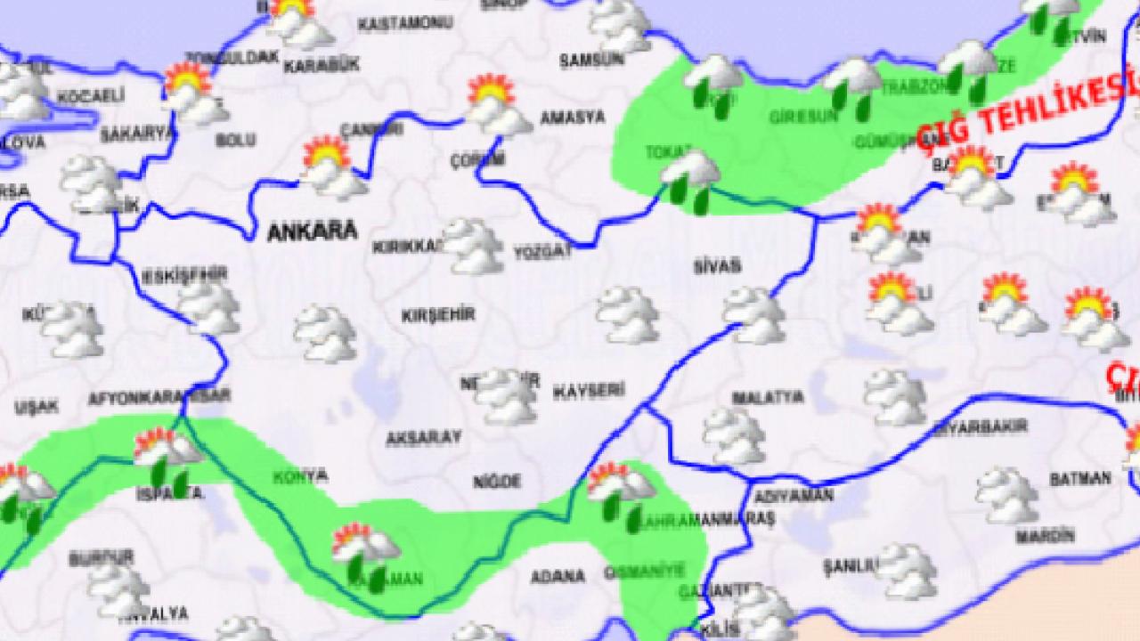 Rüzgarın ise genellikle kuzeyli yönlerden hafif, ara sıra orta kuvvette esmesi beklendiği meteorolojik rapora göre, çığ tehlikesi uyarısının yapıldığı Doğu Karadeniz’in iç kesimleri ile Doğu Anadolu’nun doğusunun yüksek yüksek kesimlerinde vatandaşların dikkatli ve tedbirli olunması istendi.
