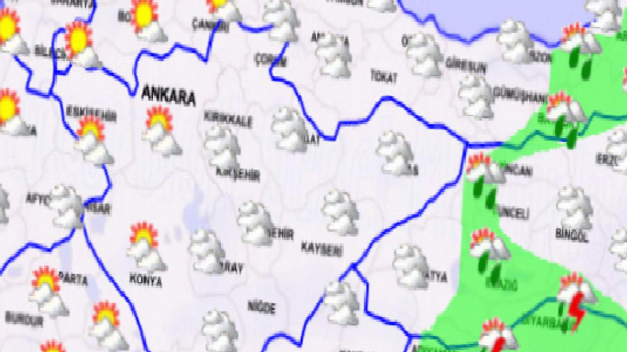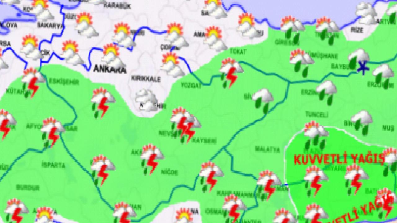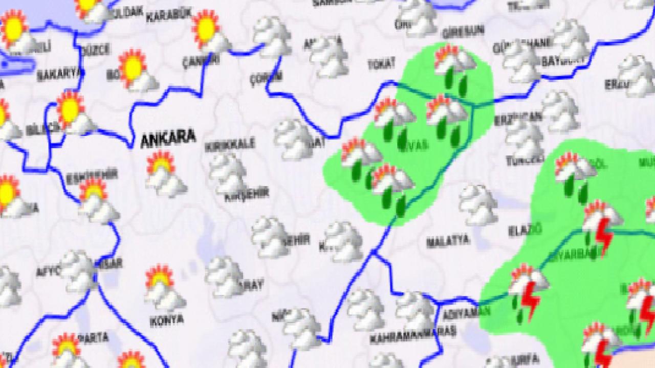 Yapılan son değerlendirmelere göre Türkiye genelinin parçalı ve çok bulutlu, İç Ege, Akdeniz'in iç kesimleri, İç Anadolu’nun güney ve doğusu, Doğu Karadeniz, Doğu ve Güneydoğu Anadolu ile Hatay, Eskişehir, Ordu, Tokat çevreleri ve Samsun'un doğu ilçelerinin aralıklı yağmur ve sağanak, yer yer gök gürültülü sağanak yağışlı geçeceği tahmin ediliyor.