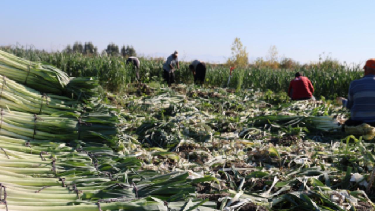 Adana'nın Kozan ilçesinde yetiştirilen pırasada hasat dönemi başladı.