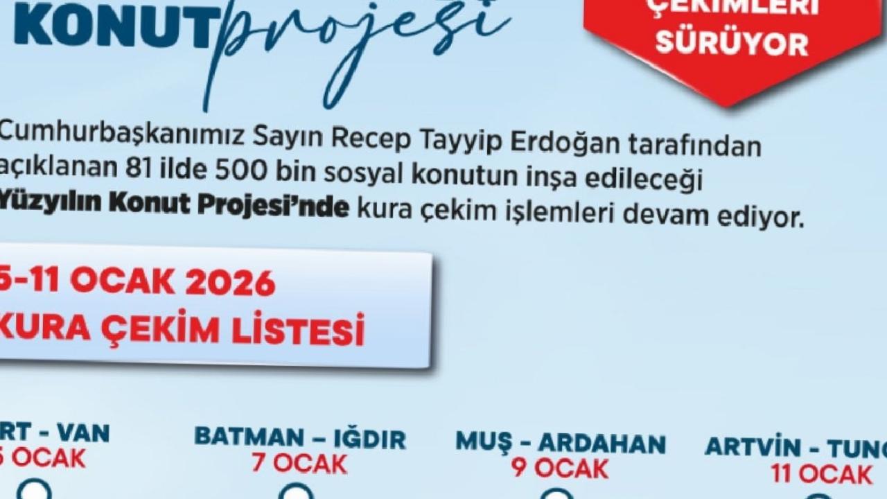 Çevre, Şehircilik ve İklim Değişikliği Bakanlığı, 81 ilde 500 bin sosyal konutun inşa edileceği “Yüzyılın Konut Projesi” için il il kura çekimlerini sürdürüyor.