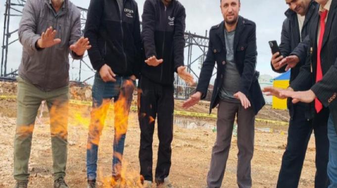 Bazı vatandaşlar da yanan doğalgazın etrafında toplanıp ısınmaya başladı.
